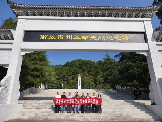国有资产管理处党支部全体党员来到解放贵州革命先烈纪念碑全体默哀和鞠躬,庄重严肃地重温入党誓词,认真参观烈士英名墙。